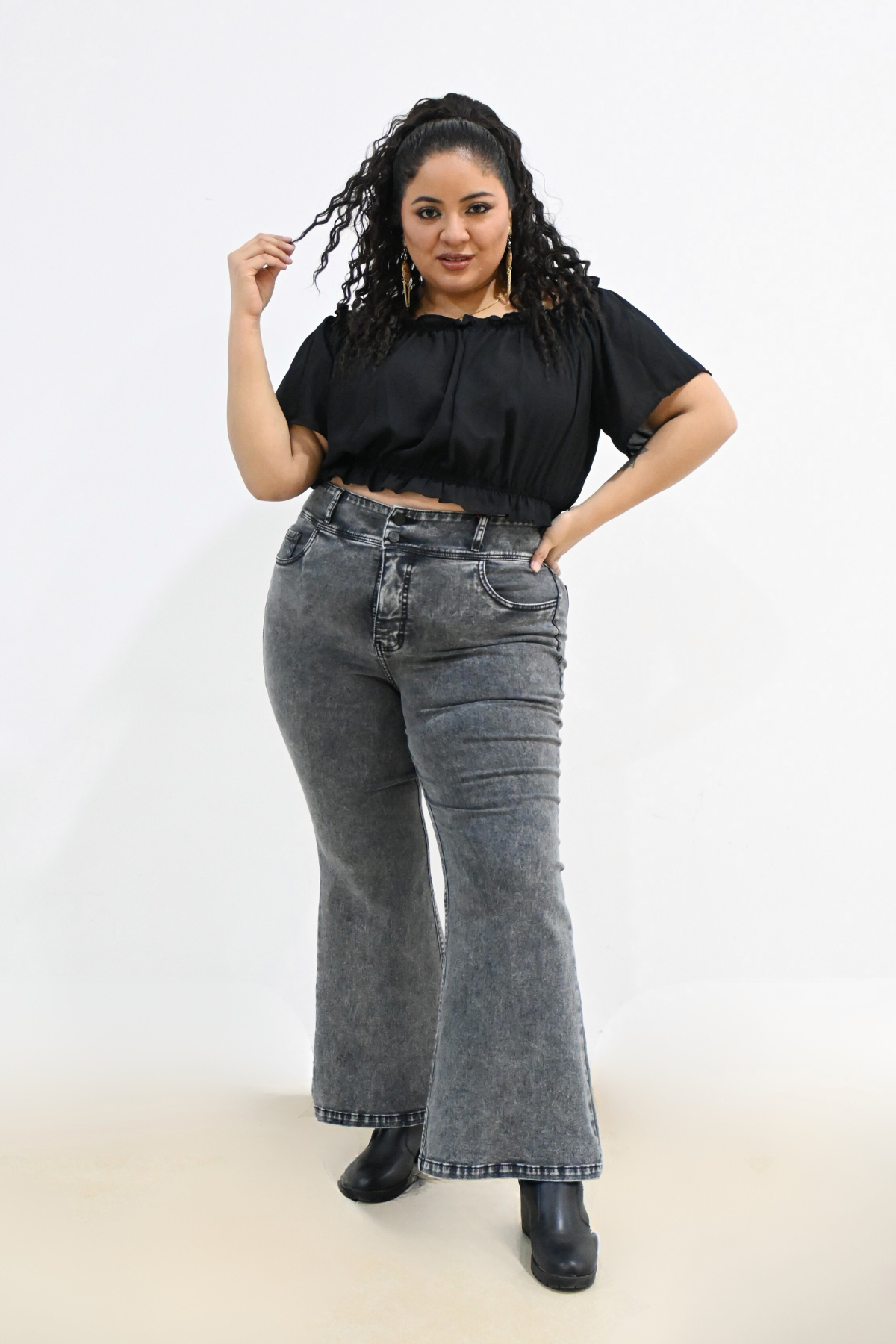 Los Jeans Flare Liz Plomo combinan estilo y comodidad con su diseño de pierna acampanada que realza tu silueta. Su tono plomo versátil se adapta fácilmente a cualquier conjunto, ideal para looks casuales o más elegantes. Perfectos para quienes buscan una prenda atemporal y con carácter.