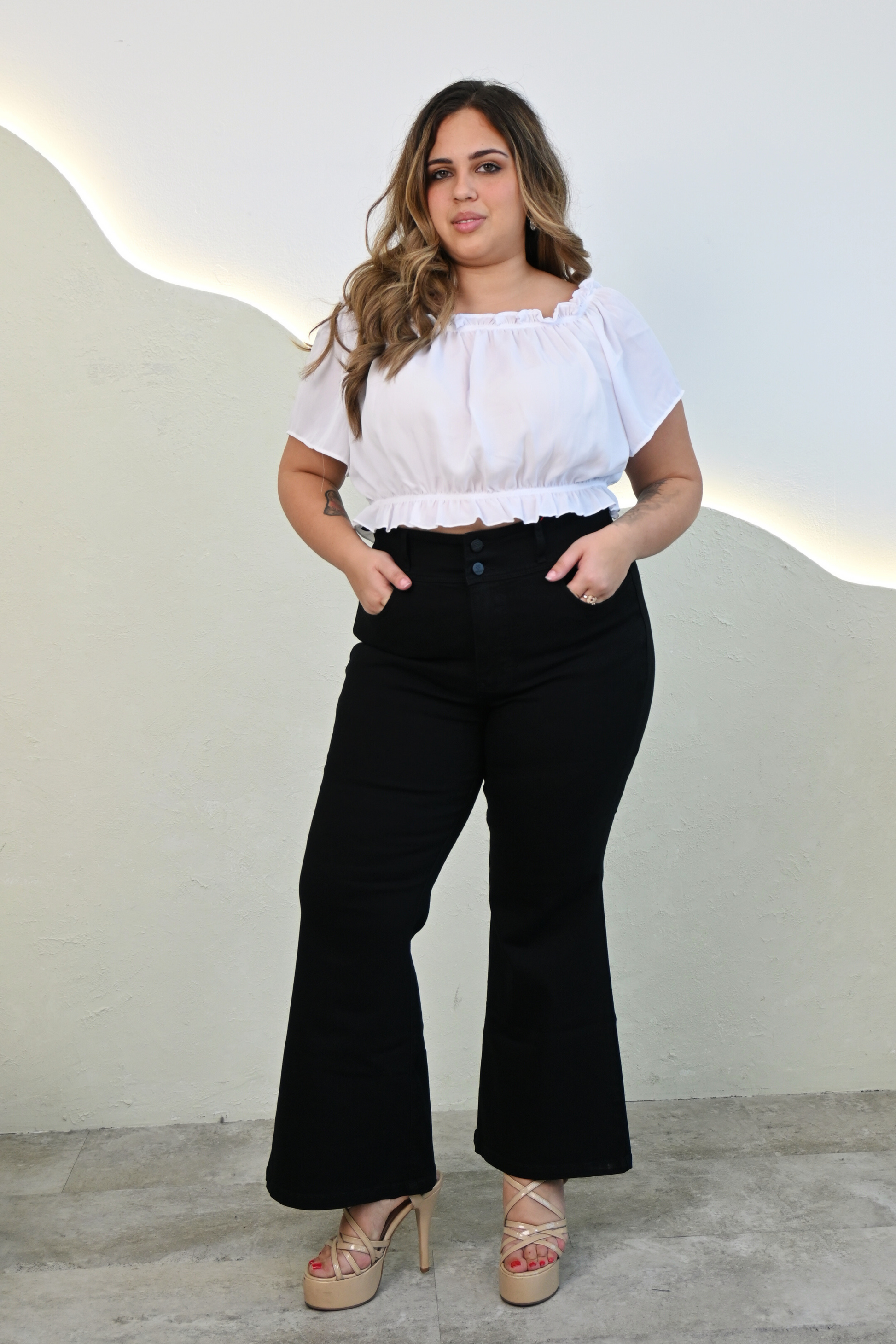 Los Jeans Flare Liz Negro combinan estilo clásico con un toque moderno. Su diseño acampanado estiliza la figura, mientras que el color negro facilita combinaciones versátiles para cualquier ocasión. Perfectos para crear looks sofisticados o casuales, estos jeans son una pieza esencial para quienes buscan comodidad sin perder tendencia.
